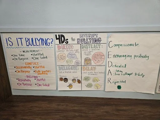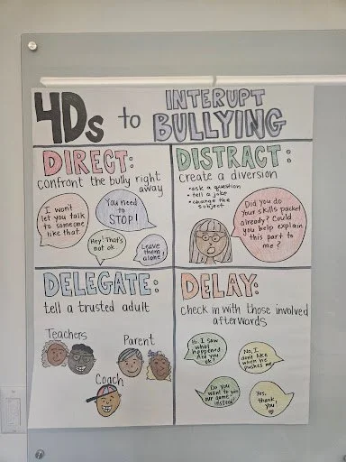 After learning about different types of bullying, it was time to teach students strategies that they can use to interrupt bullying when they see it happening! Students were taught the 4 D’s: